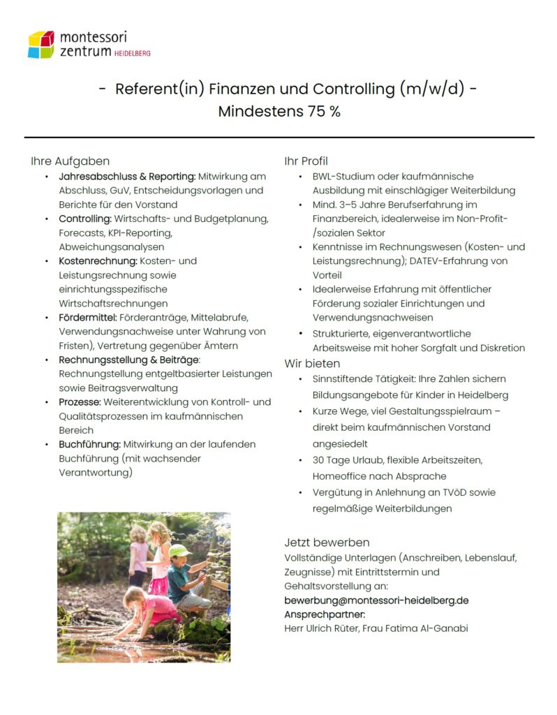 Referent(in) Finanzen und Controlling (m/w/d)
